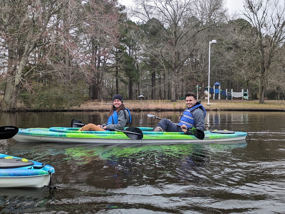 Our first trip of the weekend took us to Pocomoke State Park in nearby Maryland, where we kayaked on the Pocomoke River. In the summer, this part of the Pocomoke is usually teaming with sunbathing turtles and singing warblers. It was a bit cold (and early in the season) for that, but we still saw our fair share of diversity. Apart from the parsitic mistletoe and the knobby knees of towering cypress trees, we also got a good look at a pair of Bald Eagles.